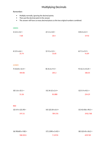 Multiplying And Dividing Decimals With Answers Teaching Resources